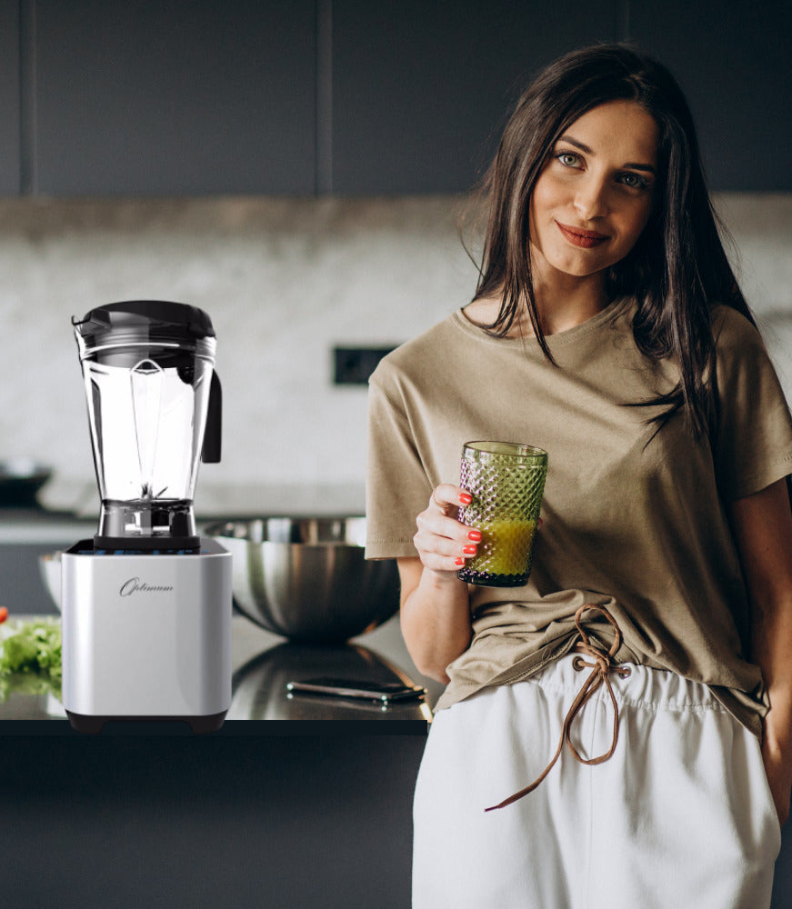 ““I am thrilled to share with you the new Power-house Optimum 9200A Next Generation blender, what a find it is! It ticks all the boxes of durability, power, and efficiency with a sleek design, a must have for all those wanting to bring raw into their kitchen. The best part is that the 9200 has an extra-added bonus of being half the price of leading blender brands! Explore the fun in creating healthy, delicious, vibrant foods from smoothies, nut milk, cocktails, soups, ice cream, nut butter and cheesecake, the list is endless! What a difference a high performance blender makes to your life.””