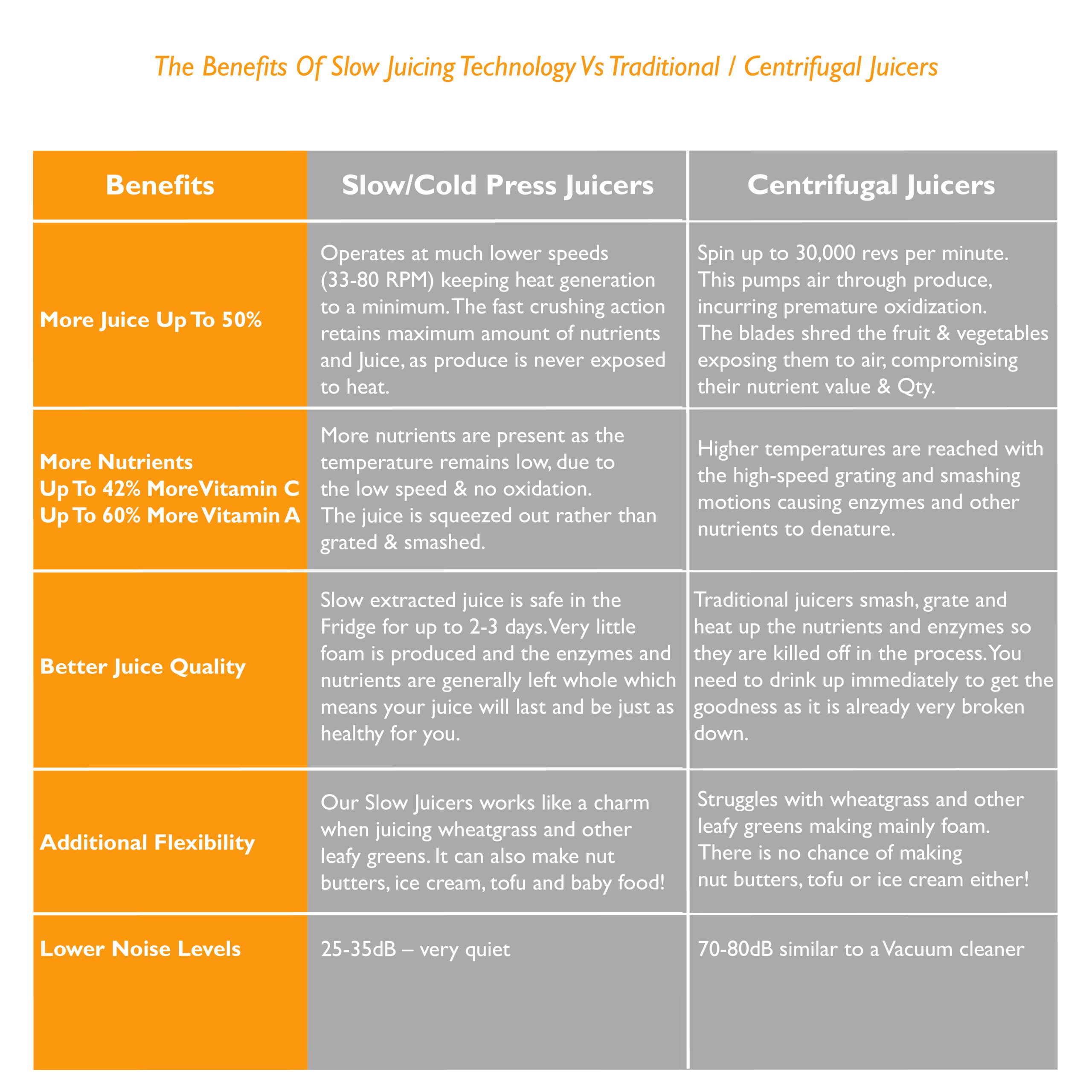 All our slow juicers have high consumer ratings and our first slow juicer won the T3 award for best juicer in the UK because we specialize in slow juicing and we have developed a multitude of innovative juicers.