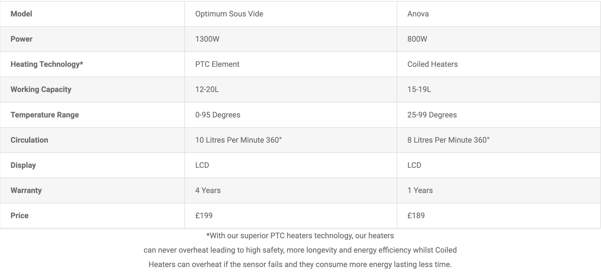 Replicating exquisite dishes executed by professional restaurant chefs has never been easier. The Optimum Sous Vide uses absolute precision Positive Temperature Coefficient (PTC) heating technology that comes with easy-to-use temperature and timer controls, enabling consistent, even heat distribution for up to 60 hours.